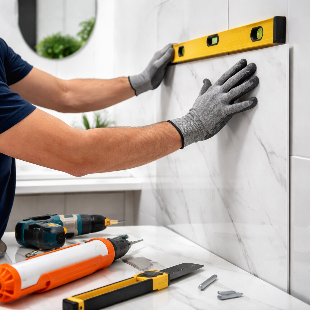 Each tool contributes to precision. For example, when we use a level consistently, panels stay aligned across the entire wall. Clean cuts also help panels connect properly, reducing visible gaps.